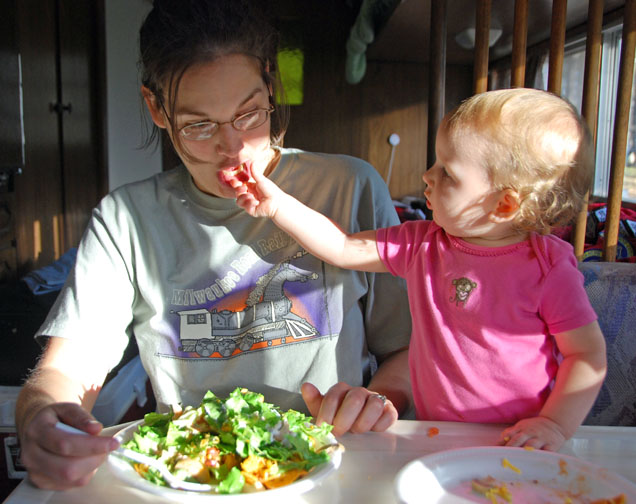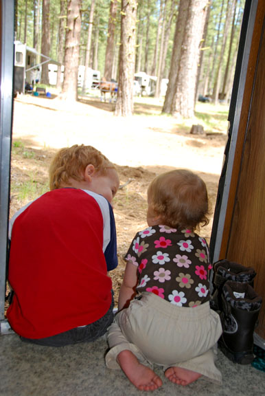 After all that we headed back to the trailer. Levi had been up in his bunk but I made dinner so he got down and ate and played around a bit longer. We had haystacks again for dinner since even though I had packed spaghetti and sauce and vegetables, I had forgotten the strainer and spoon to get it out with. Doh! Time for bed. We all settled in for the night. The kids went to sleep fairly well. Until however Levi woke up about 11:30 crying and screaming and just all out of sorts. When he has a cold he freaks out about his nose running. His top lip was chapped and he was very sensitive. I don't know if he was still asleep or if he was awake and out of sorts but he was just frantic, screaming and crying and howling for probably a solid 15 minutes. He woke up Ellie and she was confused and upset and she started crying and screaming too. They were both so loud that I am sure all the neighbors heard within a 2 mile radius. I don't think I have ever had such a hard time getting the kids to calm down before! Poor Ruth, if she was bothered by it she didn't say anything. I think we finally got them quiet again and back to sleep before midnight and then I slept pretty well after that. Levi woke up a couple times sobbing about needing a tissue but Matt took care of him.