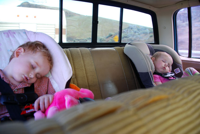 FRIDAY I did as much packing as possible on Thursday night since I wasn't for sure what time we would be leaving on Friday. As it turned out, Ruth had to work until noon so I went in for a couple hours myself, heading home about 10 am to finish last minute details. I almost forgot my suitcase, thankfully as I went around closing doors I saw it on the bed and it registered that I needed to grab that! Ruth called me shortly after noon and already had her trailer hooked up and horse loaded. She met me out at Sinwaan's barn and had gotten there long enough before me to have my stuff loaded too! Is she awesome or what? We discussed which route to take and headed out (about 1 pm), Ruth in the lead with the horse trailer and us following with the camp trailer. The wind was mighty and we were heading right into it. Not good. The first thing we noticed was that we had burned through 3/4 of a tank of gas by the time we reached Umatilla (57 miles). So we stopped and filled up both tanks. Gas was $2.91 a gallon, thankfully less than I budgeted for since we obviously were not getting the milage I had planned on. Both tanks were $96 to fill. The kids both fell asleep after that stop.